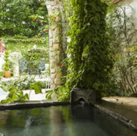 窓から季節それぞれのガーデンに咲く花をお楽しみいただけます。アンティークなしつらえのお部屋では英国気分を満喫できます。ジュラストーンの専用露天風呂では天然温泉をお好きな時に楽しむことができます。