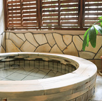 レストラン「ル・シータ」の2階に位置する開放感溢れるプチスイートルーム。お好きな時間に天然温泉をたのしめる石造りの露天風呂をしつらえております。広々2部屋続きのスイートルームでお二人の特別な時間をお過ごしください。