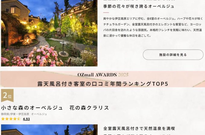会員数400万人を誇る女性向けWEBメディア オズモール様にて毎年発表される人気施設ランキング。今年も皆様のおかげで、ランクインをさせていただき、全国...